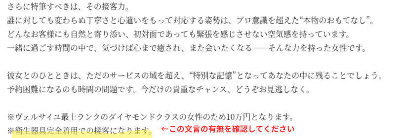 とにかく最高峰の美女と遊びたい、NN(生中出し)・NS(ノースキン)をほぼ確実に楽しみたい、 一生に一度の「人生最高の夜」を作る覚悟がある、そんな本気の想いを持っているなら、 迷わずVersaillesを選ぶべきです。