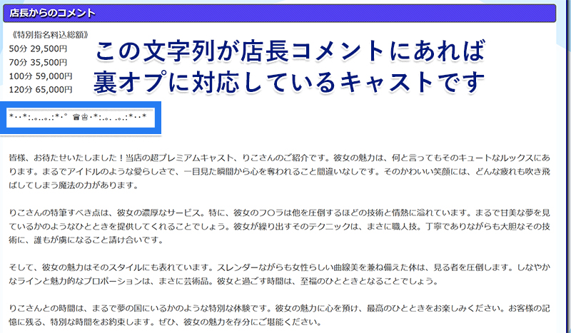 お店から正式にできると公表されているわけではなく、一方ではお試しコースのみしか指定できないキャストも存在するという口コミがあります。